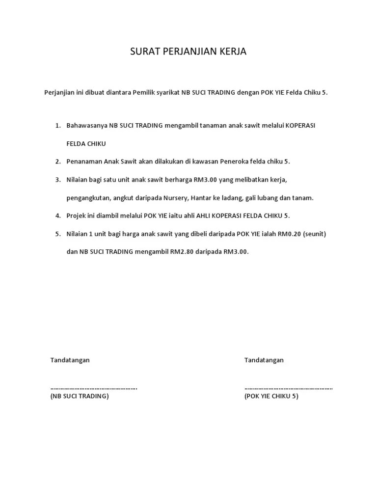 Kontrak Pekerjaan Pdf Contoh Surat Perjanjian Majikan Dan Pekerja