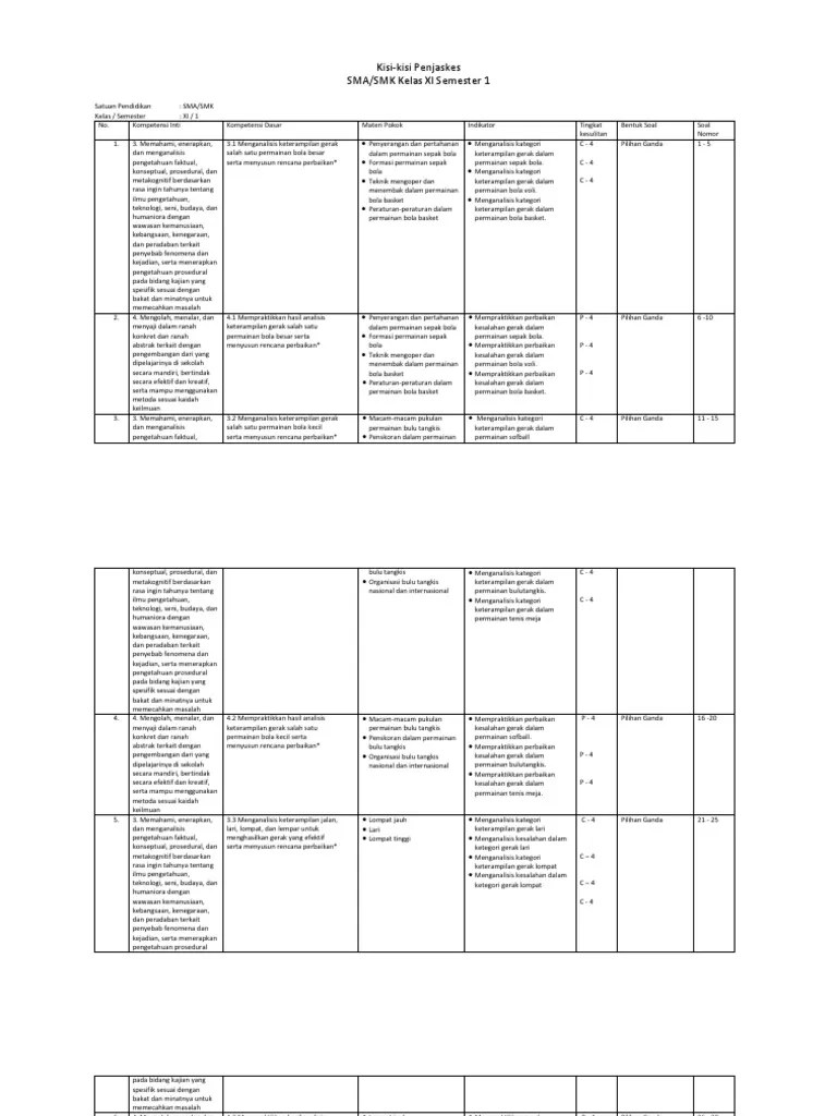 Lihat Kisi Kisi Soal Penjaskes Kelas Xi Sem 1 Pdf |