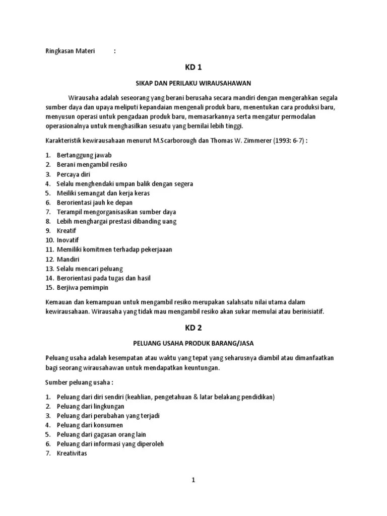Lihat Rangkuman Bab I Kewirausahaan Dan Prakarya Pdf |